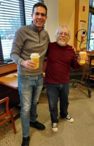 I do ESL tutoring with a man from Venezuela. Our sessions have been very informal and varied. Most weeks we meet for coffee on Saturday mornings and talk about everything going on in both of our lives, the country, and the world. Rhonal and I have become like family and have shared all sorts of experiences including going to baseball games together, dinners both out and in our home, helping him with Instacart shopping, etc. I think of those as real life classes. When he makes English mistakes, I correct those and make up mini-lessons on the spot to reinforce the corrections.